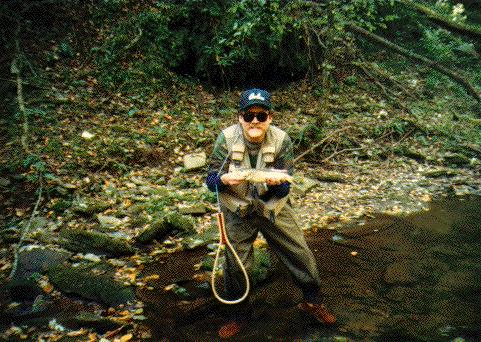 OK, I'm the one who takes the camera, so I take the pictures. I swear I've caught some fish myself, but here's the first of two pictures of Sam Long (my fishing partner). Nice brown here....about 17".