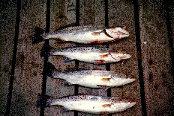 Here are some speckled sea trout (weakfish, not "trout") that I caught plugging at Emerald Isle on the NC coast one November morning several years ago....