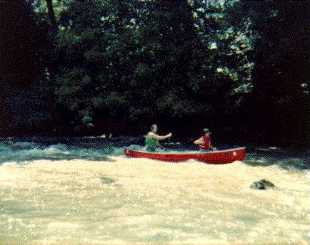 This is my wife and I (a long time ago!) on a modest class II rapid on the upper section of the Haw river in central North Carolina.