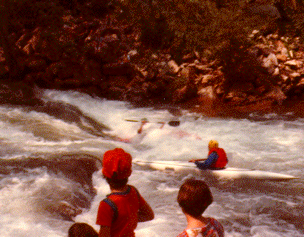 Nope, there's nothing about Bill Clinton here! Let the Web Walkers get a hold of this one! Nothing here but an old snapshot of me in a kayak in Lesser Wesser Falls on the Natahala River in North Carolina. I'm in the red boat that's almost completely underwater. This is a class III+/IV- rapid. I didn't do 'em much harder. I'm just a chicken. I quit this stuff when I dislocated my shoulder twice!